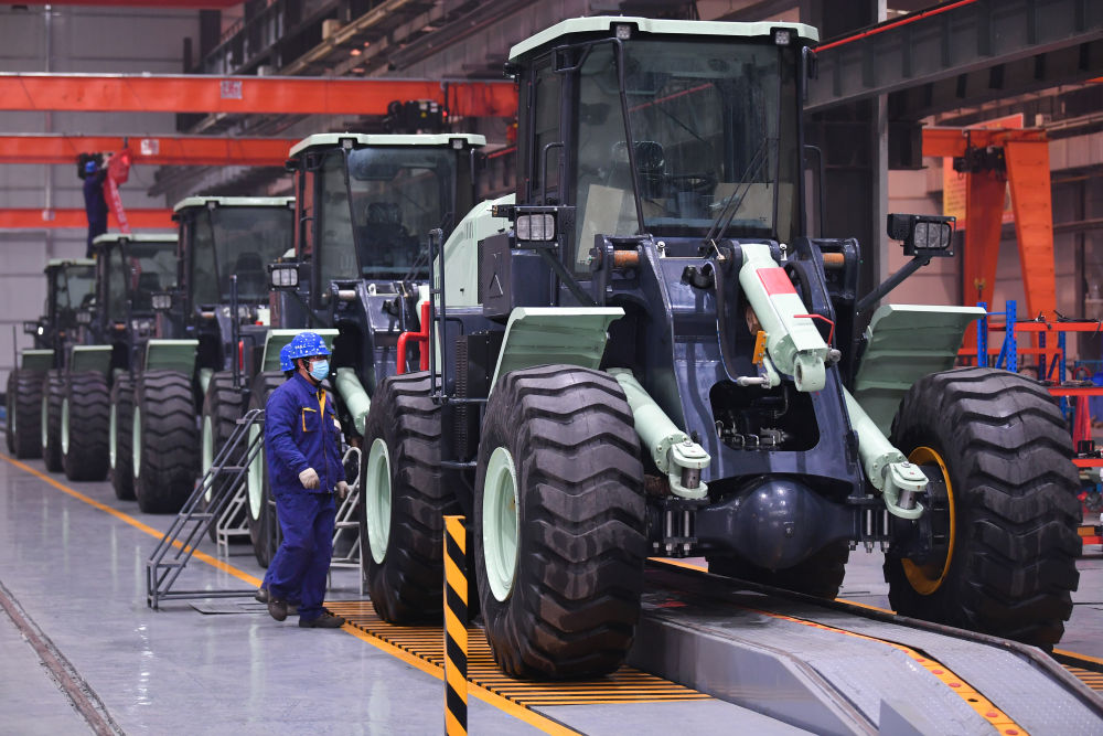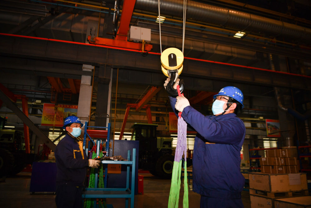 1月25日,在中鐵長(zhǎng)安重工有限公司西安閻良生產(chǎn)基地,工人在總裝車間查看即將交付的機(jī)械設(shè)備。新華社記者 張博文 攝
