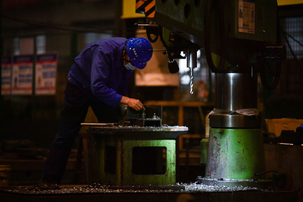 1月25日,工人在中鐵長(zhǎng)安重工有限公司西安閻良生產(chǎn)基地加工零部件。
