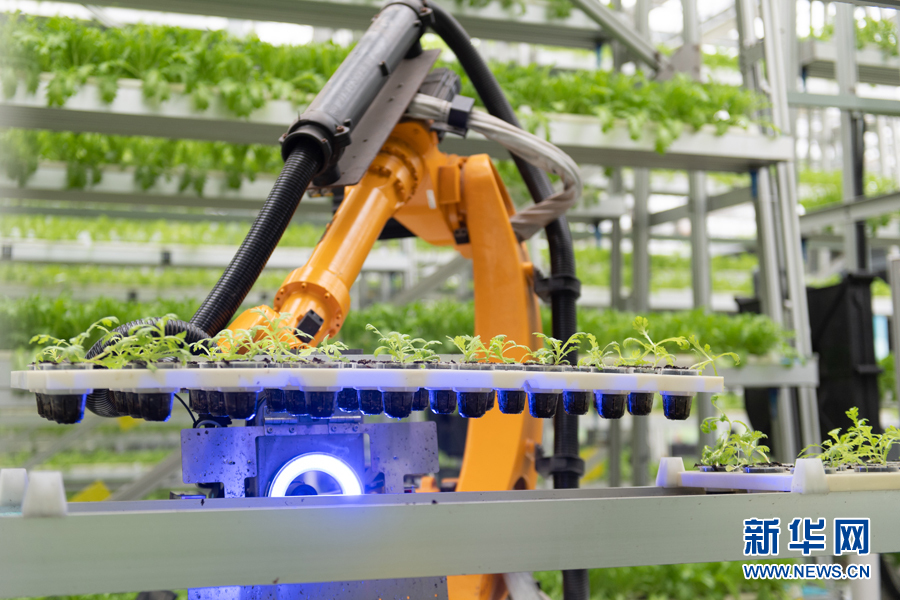 工廠內(nèi)的蔬菜栽培,采用了智能化立體式栽培技術(shù),韭菜、茼蒿等原來(lái)長(zhǎng)在地里的蔬菜,如今長(zhǎng)在種植架上,產(chǎn)量較傳統(tǒng)露地栽培也可以增產(chǎn)數(shù)倍以上。從“一粒種子到一顆菜”實(shí)現(xiàn)全程無(wú)人化作業(yè),施肥由智能化計(jì)算管控,農(nóng)活由機(jī)器人承包。