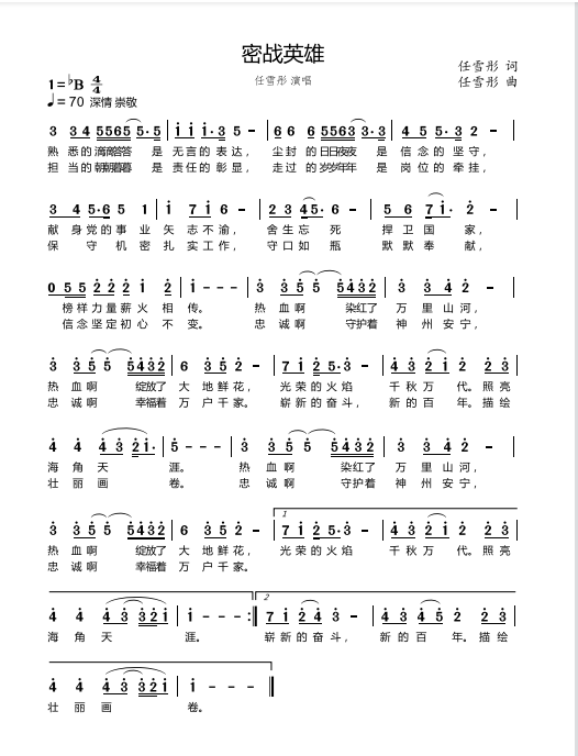 慶祝建黨百年獲獎歌曲作品選集——《密戰(zhàn)英雄》歌詞。