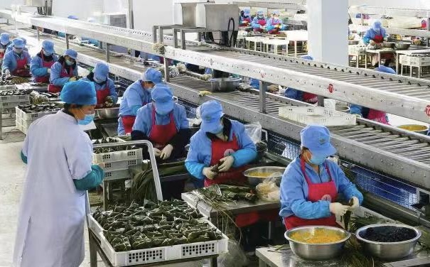 “粽子產(chǎn)業(yè)園投產(chǎn)不到幾天,就接到北京、上海、天津、內(nèi)蒙古等地客戶的300萬只粽子訂單,其中30%來自網(wǎng)絡(luò)平臺(tái)。”張新文說。
