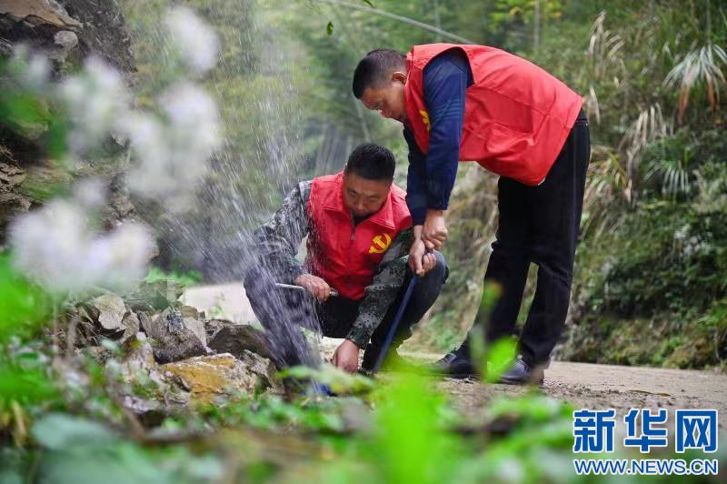 為保障春耕春灌,江西省宜春市袁州區(qū)新坊鎮(zhèn)組織志愿者對用水管道進(jìn)行重新檢修。新華網(wǎng)發(fā) 張文 攝