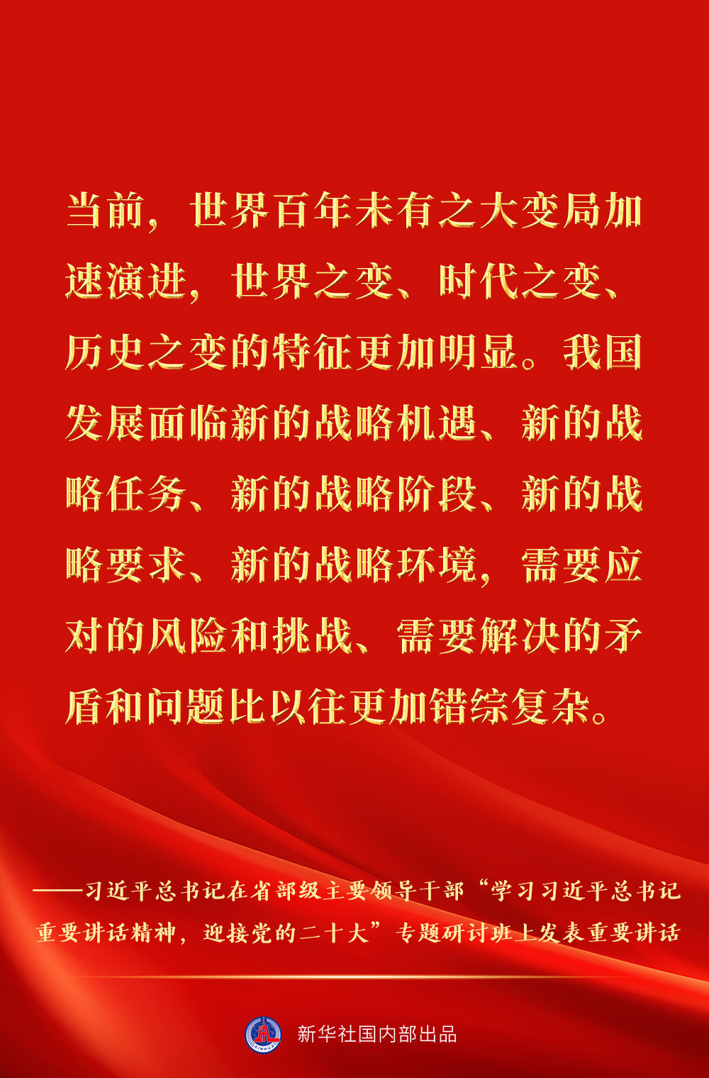 省部級主要領導干部“學習習近平總書記重要講話精神,迎接黨的二十大”專題研討班26日至27日在京舉行。中共中央總書記、國家主席、中央軍委主席習近平發(fā)表重要講話。一起來看金句速覽。