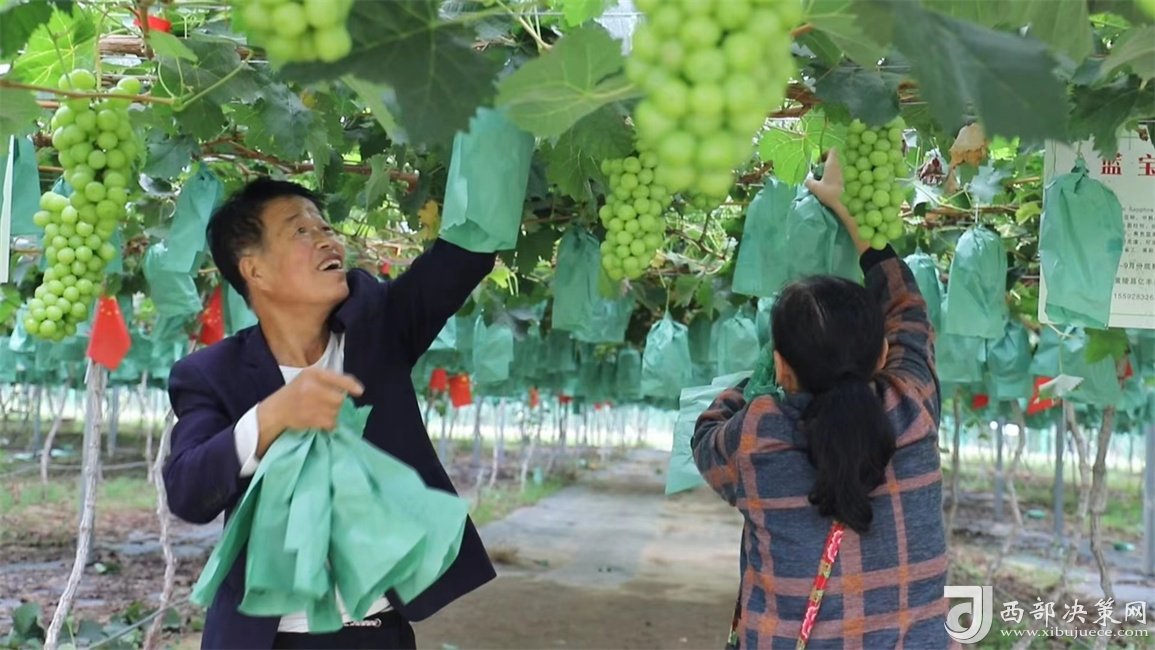 西部決策網(wǎng) 初秋時(shí)節(jié),來(lái)到黃陵縣阿黨鎮(zhèn)北村億豐玫瑰葡萄園內(nèi),滿園的豐收景象,禁不住讓人喜上眉梢。藤架上,一串串晶瑩剔透的果實(shí)透著陽(yáng)光的味道,令人口舌生津、垂涎欲滴,咬一顆放進(jìn)口中,香甜的汁液溢滿舌尖,幸福的甜蜜充滿周身……