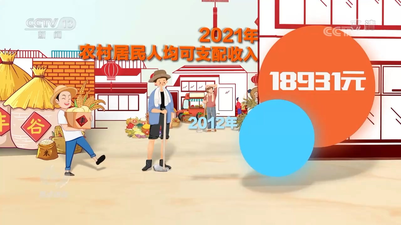 2021年,農(nóng)村居民人均可支配收入18931元,比2012年翻了一番多,這背后是大力發(fā)展的鄉(xiāng)村產(chǎn)業(yè),每個脫貧縣都打造了2-3個主導(dǎo)產(chǎn)業(yè),產(chǎn)業(yè)振興是鄉(xiāng)村振興的重中之重。從只賣農(nóng)產(chǎn)品本身到不斷增加附加值,我國農(nóng)產(chǎn)品加工轉(zhuǎn)化率達(dá)到了70.6%。越來越豐富的農(nóng)產(chǎn)品通過網(wǎng)絡(luò)賣到千家萬戶,農(nóng)產(chǎn)品網(wǎng)絡(luò)零售額超過4200億元。與此同時,農(nóng)村一二三產(chǎn)業(yè)不斷融合,累計創(chuàng)建了140個優(yōu)勢特色產(chǎn)業(yè)集群、250個國家現(xiàn)代農(nóng)業(yè)產(chǎn)業(yè)園,其中,鄉(xiāng)村旅游產(chǎn)業(yè)每年營業(yè)收入也已經(jīng)超過7000億元。在這些產(chǎn)業(yè)的助力下,老鄉(xiāng)們的小康生活,還在繼續(xù)。