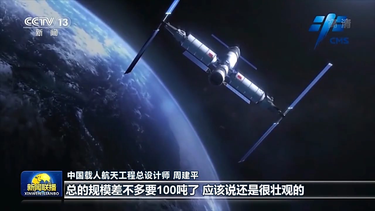 中國載人航天工程總設(shè)計師 周建平:總書記一直把航天強國建設(shè),作為實現(xiàn)中華民族偉大復興中的一個重要的組成部分。中國空間站最大構(gòu)型就是三艙三船,總的規(guī)模差不多要100噸,應(yīng)該說還是很壯觀的。