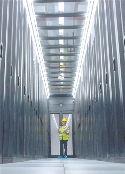 近年來,貴州省全力實施大數(shù)據(jù)戰(zhàn)略行動,數(shù)字經(jīng)濟增速全國領(lǐng)先,給當?shù)厝罕娚a(chǎn)生活方式帶來顯著改變。圖為工作人員在中國移動貴陽數(shù)據(jù)中心機房內(nèi)巡檢。 |