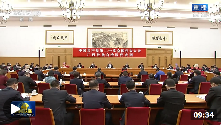 10月17日,在作完黨的二十大報(bào)告的第二天,總書(shū)記來(lái)到了廣西代表團(tuán)。