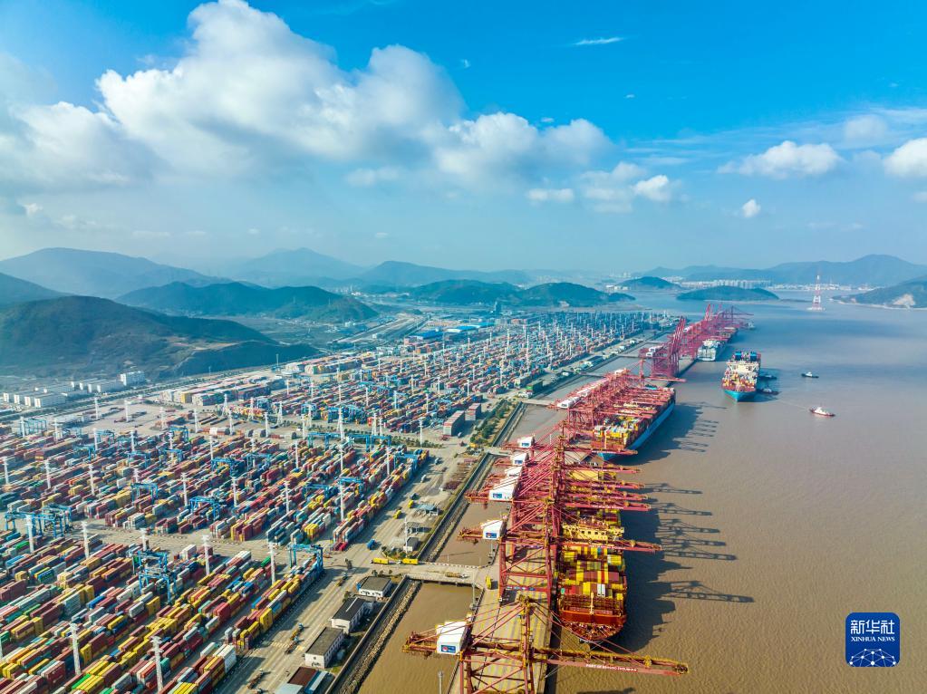 這是浙江寧波舟山港穿山港區(qū)(2021年12月24日攝,無人機(jī)照片)。新華社發(fā)(湯健凱 攝)