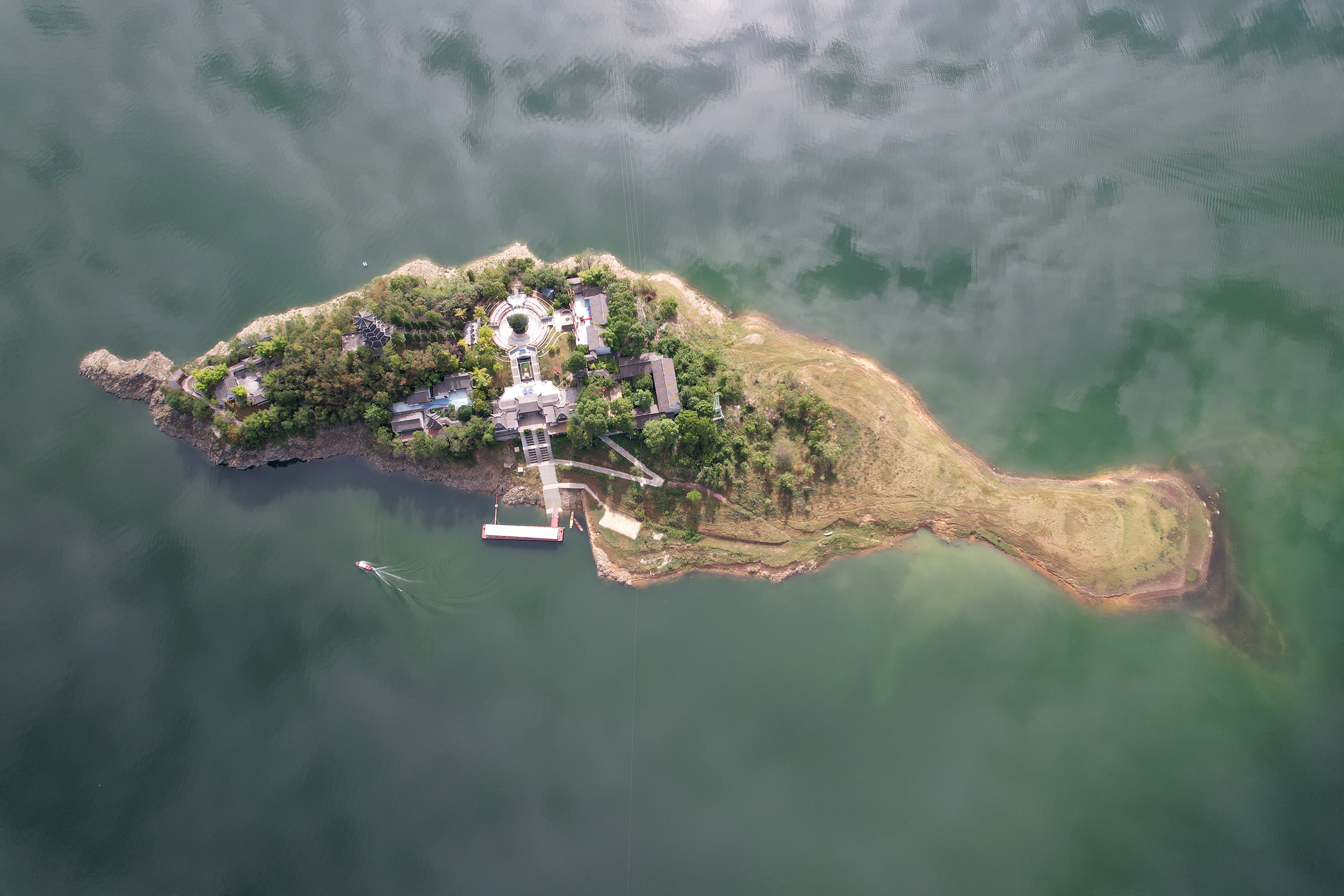 安康市漢濱區(qū)境內(nèi)的漢江瀛湖景色(無人機(jī)照片 新華社記者 邵瑞 攝)
