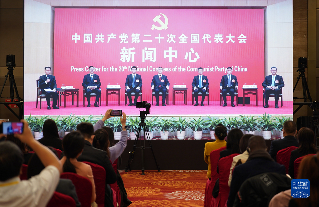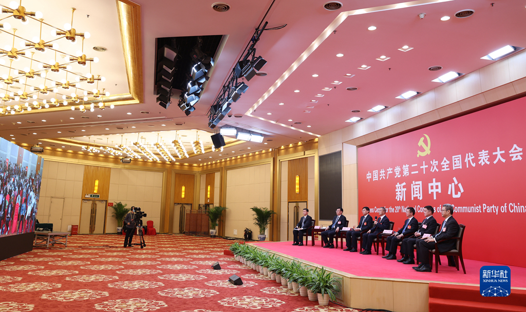 10月20日,中國共產(chǎn)黨第二十次全國代表大會新聞中心舉行集體采訪。青海、寧夏、新疆、中央和國家機(jī)關(guān)、中央金融系統(tǒng)、中央企業(yè)系統(tǒng)(在京)代表團(tuán)新聞發(fā)言人出席,介紹代表團(tuán)學(xué)習(xí)討論二十大報(bào)告情況,并回答記者提問。新華社記者 陳建力 攝