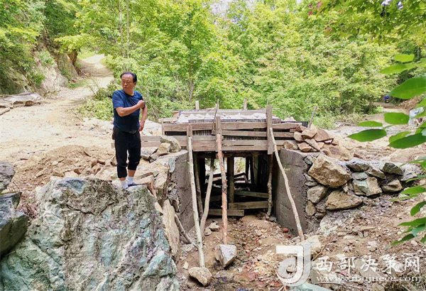 寧強(qiáng)縣陽平關(guān)鎮(zhèn)伍家壩村第一書記唐賢斌冒著酷暑在查看修建便民橋。