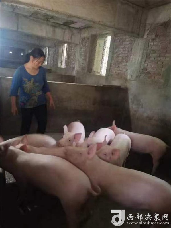 陽平關(guān)鎮(zhèn)伍家壩村的村民正在圈舍喂豬。
