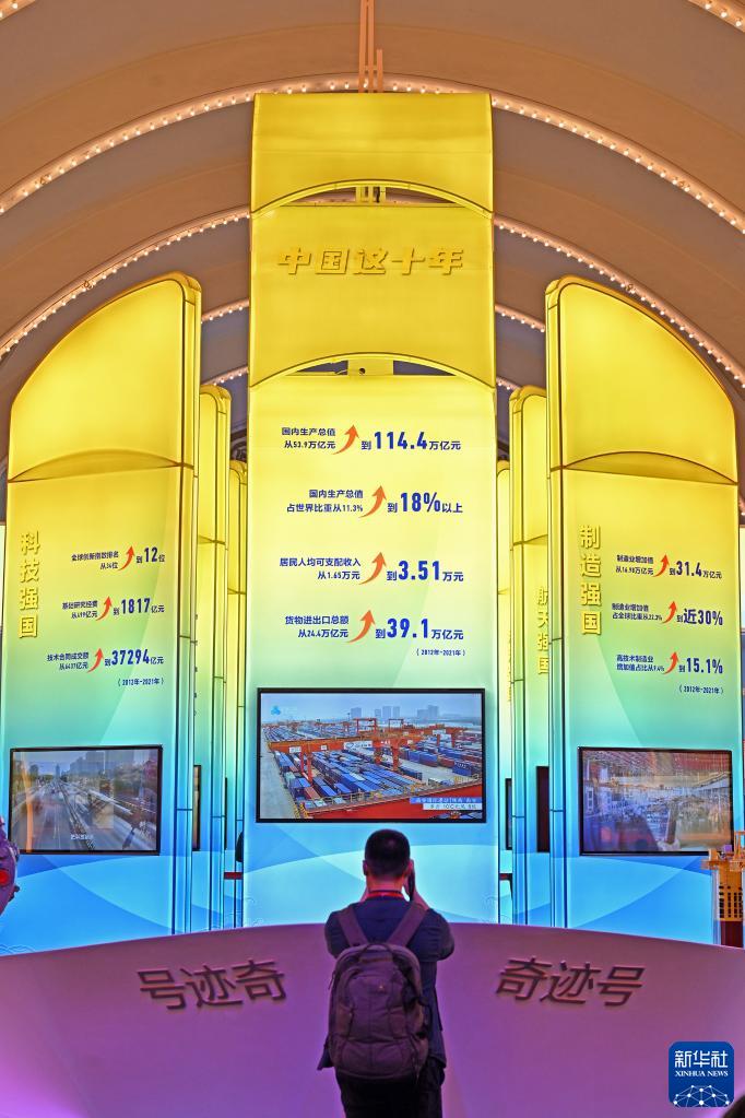 在“奮進(jìn)新時代”主題成就展的中央綜合展區(qū),一艘中國經(jīng)濟(jì)“奇跡號”巨輪模型吸引了參觀者的目光。在時代洪流中奮楫揚(yáng)帆,于驚濤駭浪中行穩(wěn)致遠(yuǎn),非凡十年深刻啟示:正是因?yàn)榇_立了習(xí)近平同志黨中央的核心、全黨的核心地位,確立了習(xí)近平新時代中國特色社會主義思想的指導(dǎo)地位,黨才有力解決了影響黨長期執(zhí)政、國家長治久安、人民幸福安康的突出矛盾和問題,消除了黨、國家、軍隊(duì)內(nèi)部存在的嚴(yán)重隱患,從根本上確保實(shí)現(xiàn)中華民族偉大復(fù)興進(jìn)入了不可逆轉(zhuǎn)的歷史進(jìn)程。