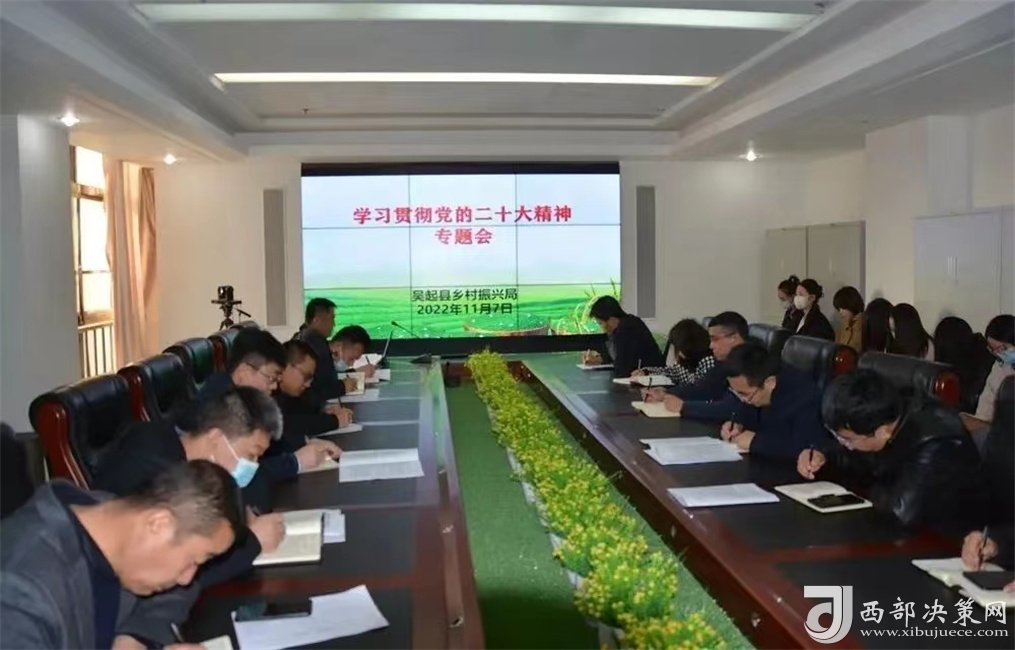 ( 西部決策網(wǎng)訊 齊春梅)11月7日,吳起縣鄉(xiāng)村振興局召開會(huì)議專題傳達(dá)學(xué)習(xí)黨的二十大精神,安排部署學(xué)習(xí)貫徹意見(jiàn),局長(zhǎng)王鑫主持,局全體領(lǐng)導(dǎo)干部參加會(huì)議。