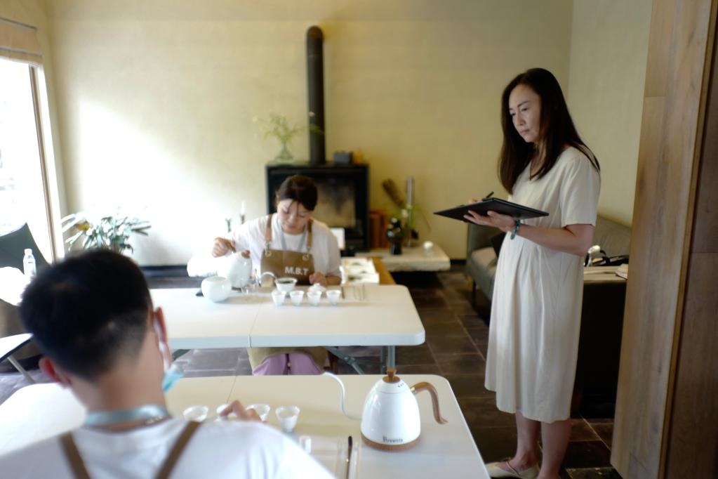 學(xué)員在莫干山民宿管家培訓(xùn)中心內(nèi)進(jìn)行茶藝考核。新華社記者徐中哲 攝