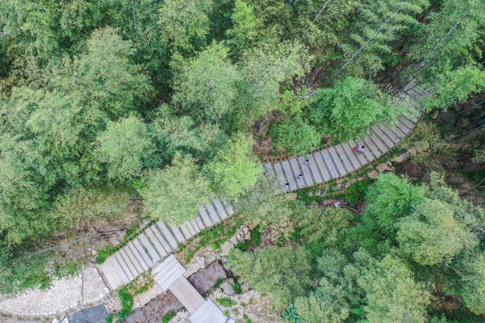 近年來,藍山縣打出一套“組合拳”,優(yōu)化營商環(huán)境,加強基礎設施建設,支持民營企業(yè)發(fā)展,讓企業(yè)放心投資文旅產(chǎn)業(yè)。在藍山谷景區(qū),當?shù)卮迕裾涌煊尾降?、石拱橋等建設,為即將到來的賞楓旺季做準備。