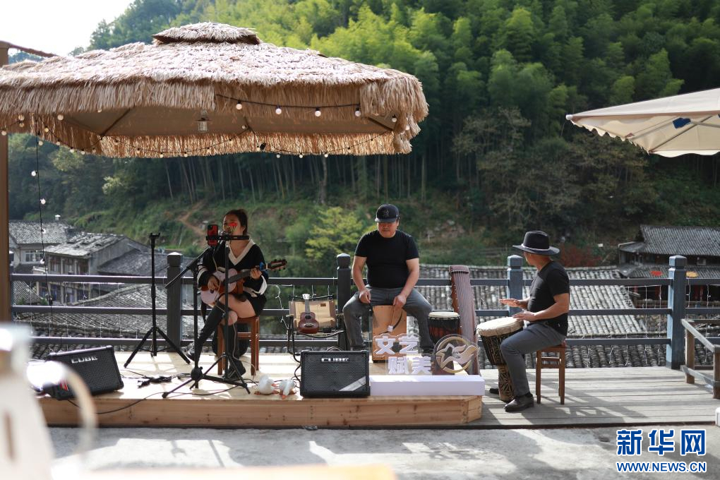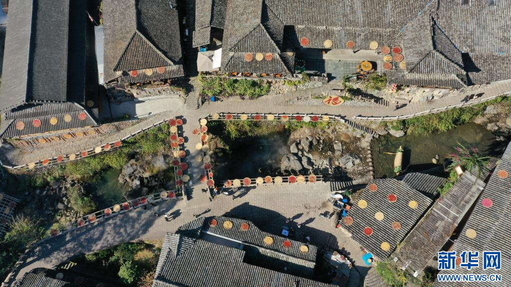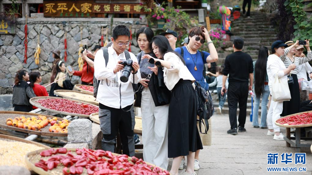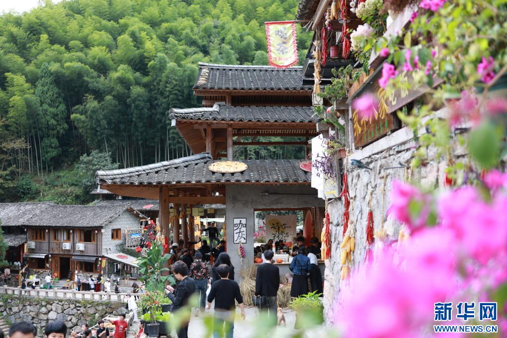 游客在林坑村打卡拍照。新華網(wǎng)發(fā)
