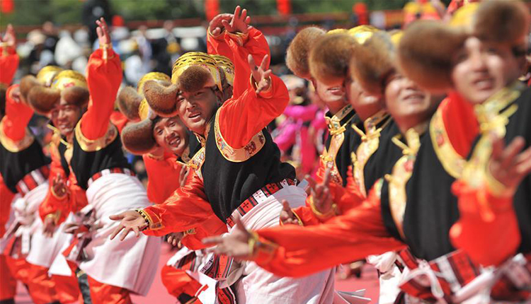 西藏:千人鍋莊頌祖國(guó)